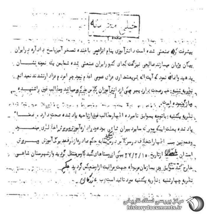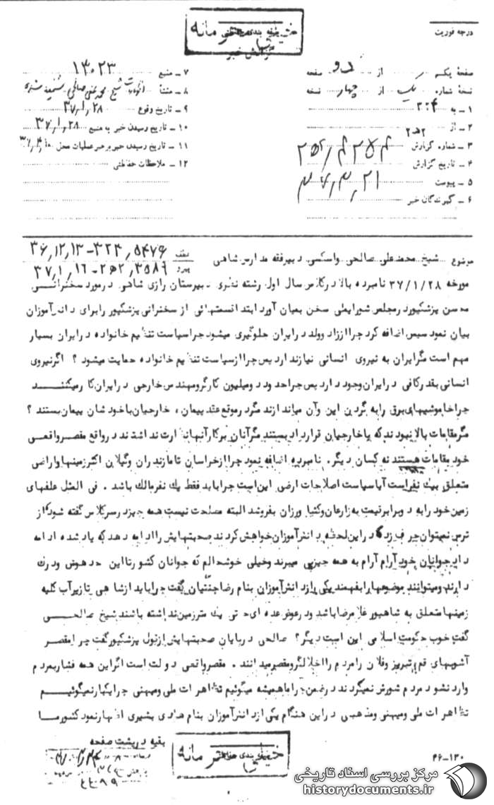 مورخه 28 /1 /37 نامبرده بالا در کلاس سال اول رشته نظری دبیرستان رازی شاهی