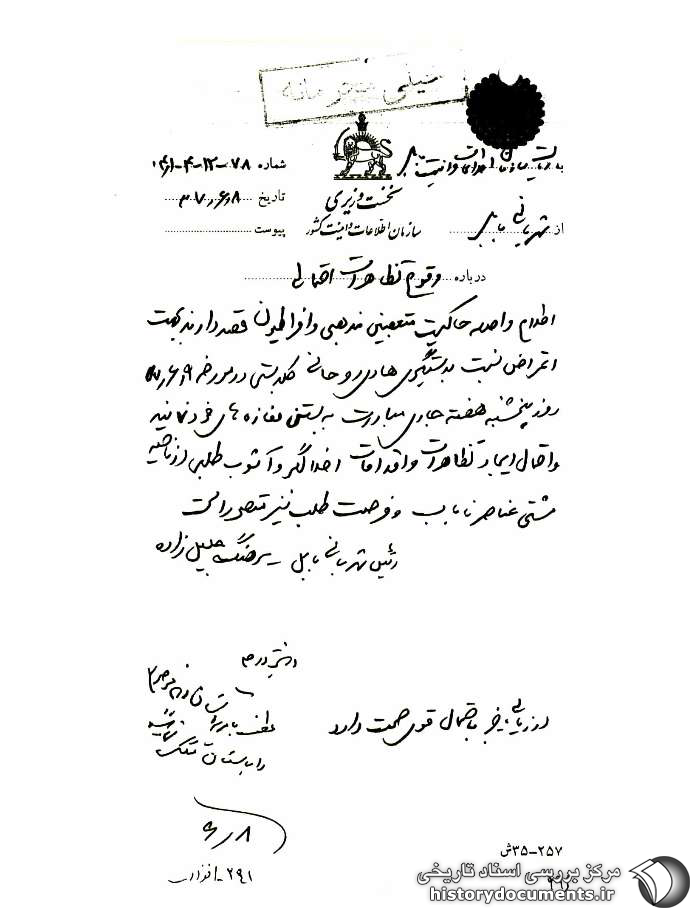 به: ریاست سازمان اطلاعات و امنیت بابل