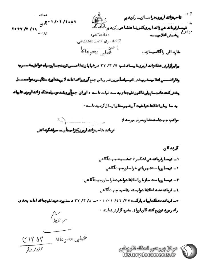 1. تیمسار فرماندهی لشکر 77 مشهد جهت آگاهی