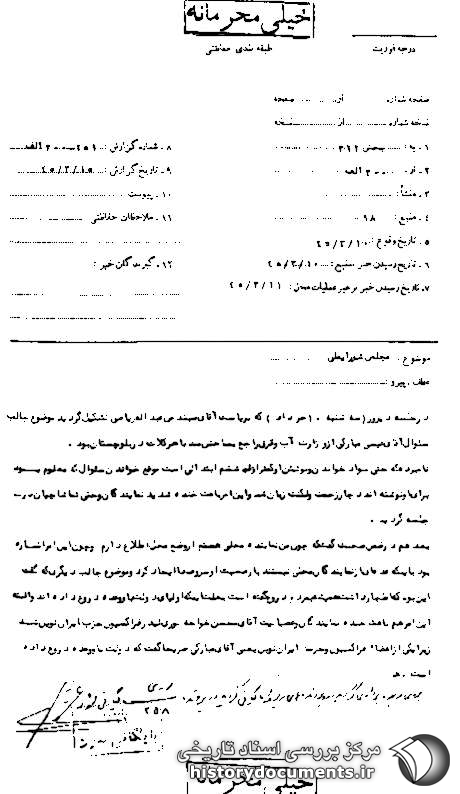 بررسى و بهرهبردارى گردید و در پروندههاى مربوطه بایگانى گردید در پرونده 258ر ـ ى بایگانى شود.