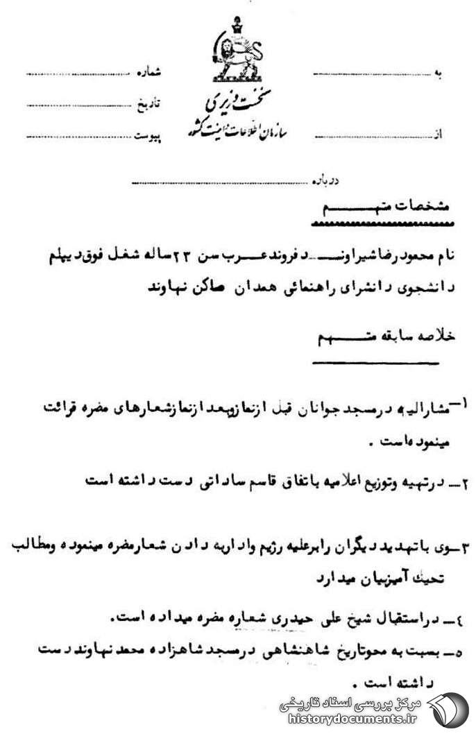 5- به سبت به محو تاریخ شاهنشاهی در مسجد شاهزاده محمد نهاوند دست داشته است /.