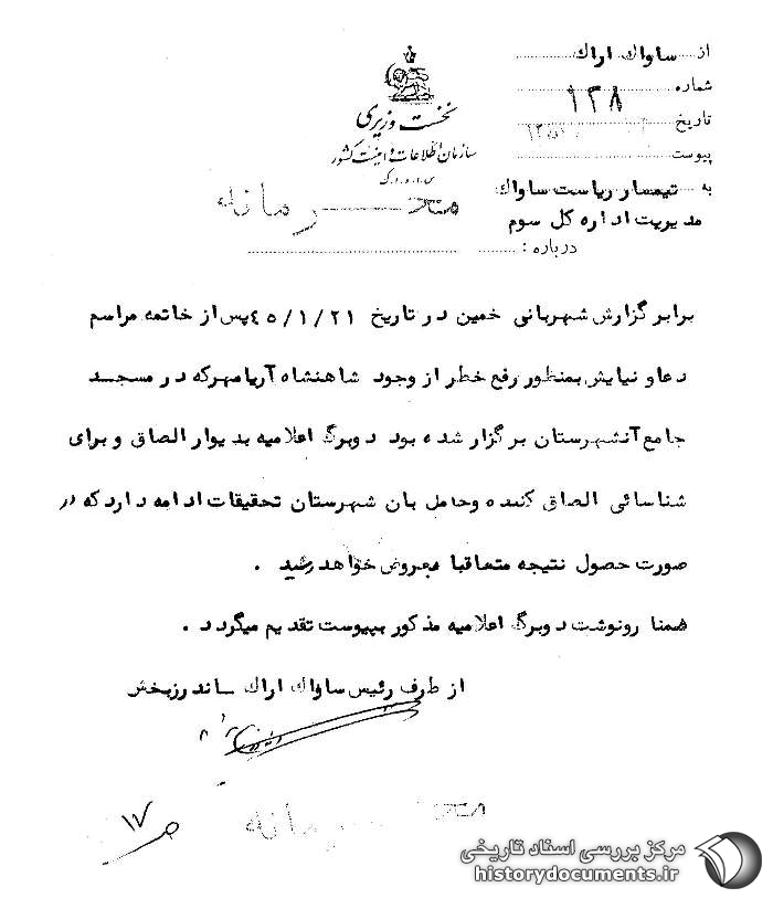 از طرف رئیس ساواک اراک ـ اندرزبخش