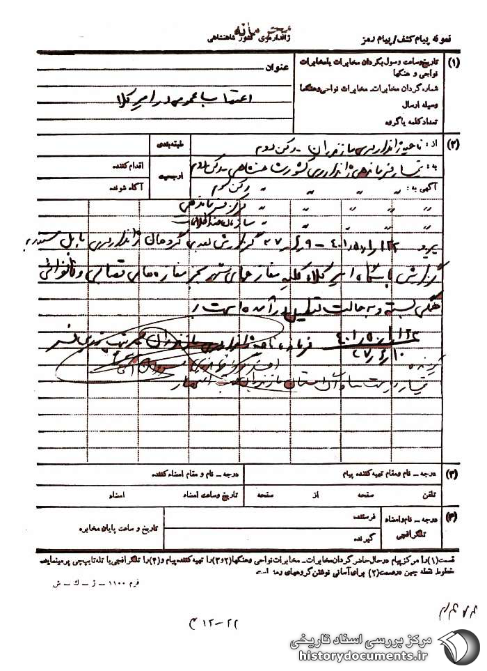 تیمسار ریاست ساواک استان مازندران جهت استحضار 22-312 3474