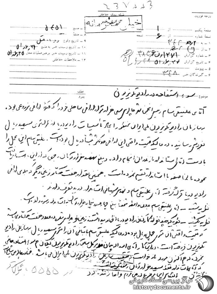 آقای علینقی سام، رئیس انجمن شهر چالوس، سی هزار متر از اراضی ساحلی خود را که قبلاً اراضی مزروعی بوده، به سازمان رادیو تلویزیون ملی ایران، به منظور ایجاد تأسیسات رادیو دریا از قرار متری سیصد ریال به فروش رسانید. در حالی که قیمت واقعی این اراضی حداکثر هشتاد ریال بوده است. علینقی سام این عمل را با دست آقای استاندار مازندران انجام داده و مبلغ نهصد هزار تومان وجهی که از این بابت دریافت نموده، بالمناصفه با استاندار تقسیم نموده است. همچنین مقدار هفت هکتار زمین دیگر که جلوی اراضی رادیو دریا قرار گرفته، آقای علینقی سام و مهندس شیبانی استاندار در ید تصرف دارند.