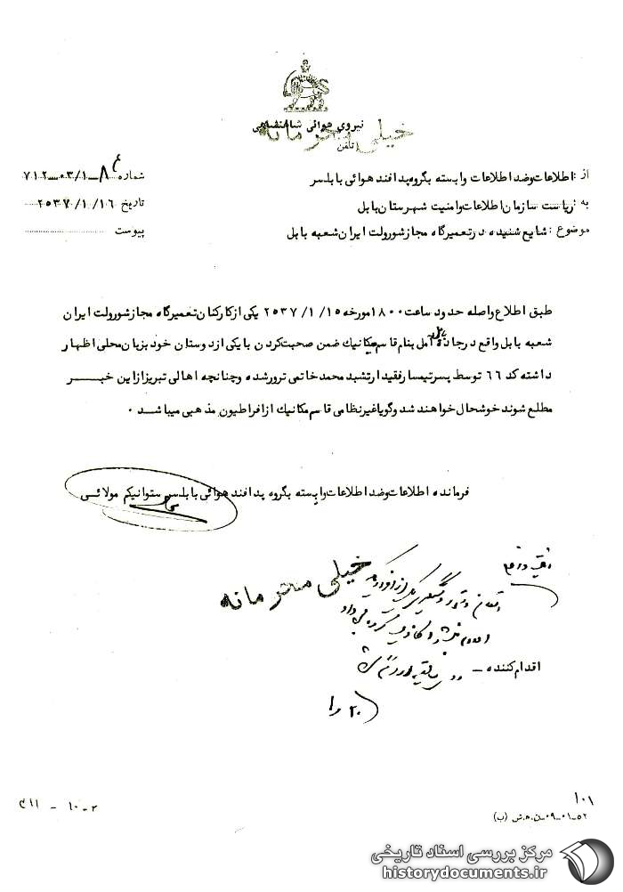 از: اطلاعات و ضداطلاعات وابسته به گروه پدافند هوایی بابلسر
