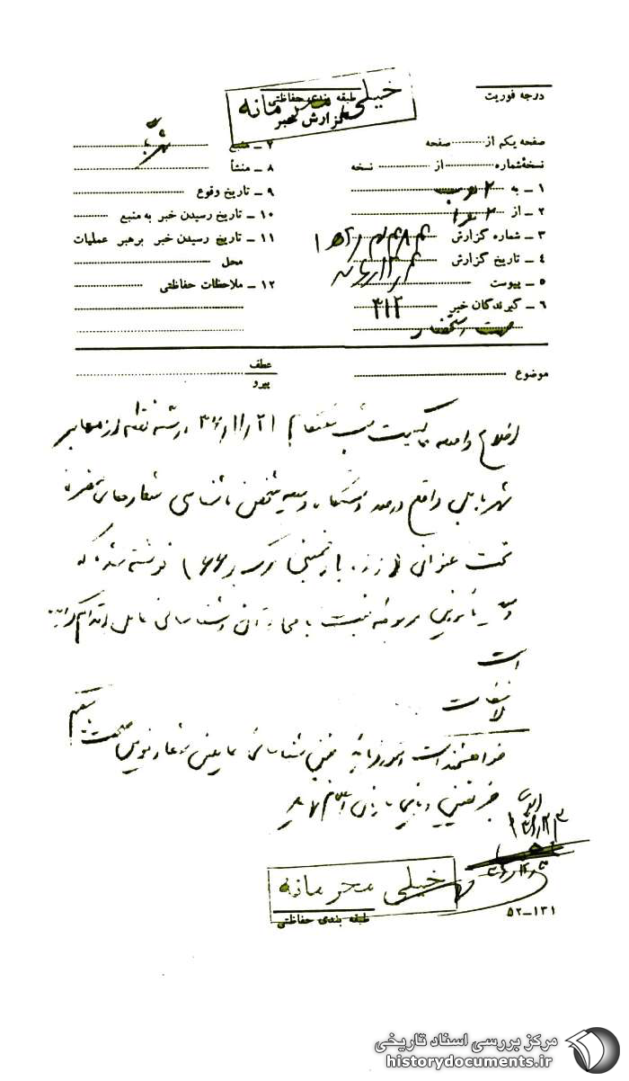 اطلاع واصله حاکی است شبهنگام 29 /11 /36 در سه نقطه از معابر شهر بابل واقع در صددستگاه وسیله شخص ناشناسی شعارهای مضرّه تحت عنوان (زنده باد خمینی مرگ بر 66) نوشته شده که وسیلۀ مأمورین مربوطه نسبت به امحای آن و شناسایی عامل اقدام گردیده است.