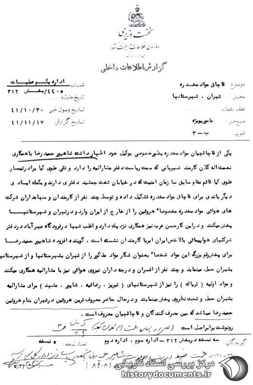 گیرندگان : سه نسخه در بخش 312 ـ اداره سوم ـ اداره دوم.
