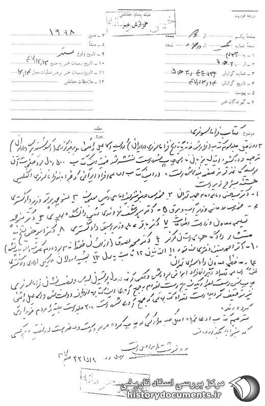 2 روز قبل، جلد سوم کتاب (فراموشخانه یا تاریخ فراماسونری در ایران) که وسیله اسماعیل رائین مدیر خبرگزاری (آسوشیتدپرس در ایران) ترجمه و در کشور ایتالیا به زبان فارسی چاپ شده است، منتشر شد. قیمت این کتاب 500 ریال بود. صفحات آن به وسیله کاغذ قرمز صفحهبندی شده است. در این کتاب اسامی افراد ایرانی که جزء باند فراماسونری انگلیسی هستند، به شرح زیر است: