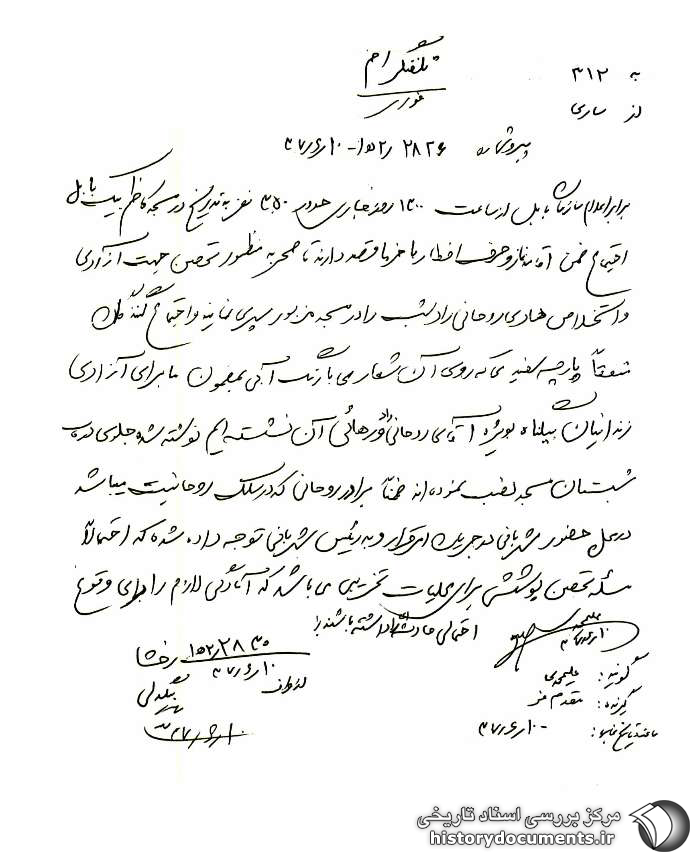 پیرو شماره: 2826 / 2ﻫ 1 – 10 /6 /37