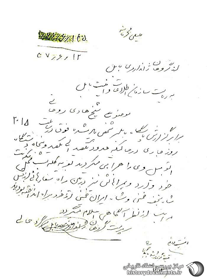 برابر گزارش پاسگاه بابلسر شخص یادشده فوق در ساعت 2015 روز جاری در حالی که حدود یکصد الی یکصد و پنجاه دستگاه اتومبیل وی را همراهی میکردند به قریه کلّهبست محل سکونت خود وارد و همراهانش نیز در بین راه شعارهائی از قبیل: شاه نجف خمینی و شاه ایران خمینی از خود به راه انداخته بودند. مراتب از نظر آگاهی اعلام میگردد.