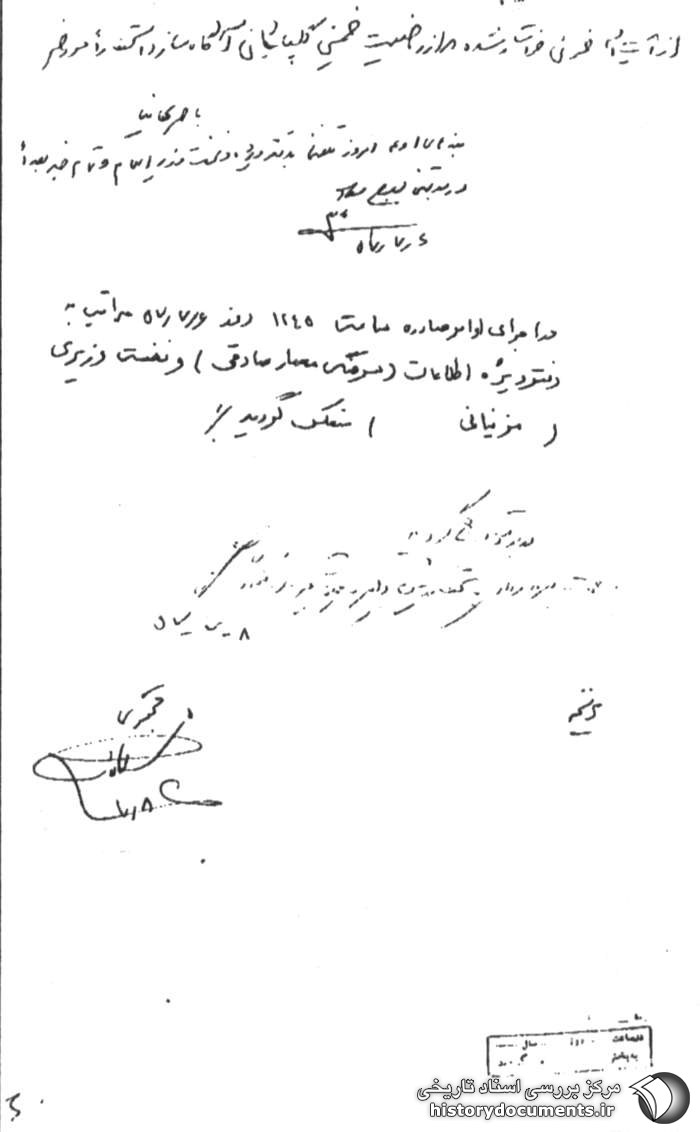 4 ـ روز جاری شریعتمداری و گلپایگانی با مخابره تلگرافاتی بعنوان خمینی