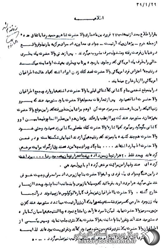 در این موقع شخصی به نام کاشانی که آشنایی قبلی با والاحضرت داشته به بار وارد و به جمع اطرافیان والاحضرت اضافه میشود. پس از تعارفات معموله والاحضرت به او دستور میدهند که برو زنهایی که در این بار هستند به سر میز دعوت کن او هم برای این منظور رفته که در این موقع والاحضرت به پژهان دستور میدهند کت وی را از عقب پاره کند پژهان هم این عمل را انجام و طبعاً بین او و کاشانی بگومگو در میگیرد که با اشارۀ والاحضرت کتک مفصلی به کاشانی زده میشود و حتی خود والاحضرت هم چند کشیده به او میزند که در نتیجه یکی از دندانهایش شکسته است و در ضمن والاحضرت اظهار داشتهاند... به نام کادو برای بچۀ من ده صندوق از گمرک برایت مرخص کردهاند و بعد فقط 20 هزار تومان به من داده و پنجاه هزار تومان به محمودرضا... پرداخت کردهای صندوقها را من برایت مرخص کردهام به او پول میدهی. در این هنگام جوادی یک فردی را به والاحضرت به نام بازپرس دادسرا معرفی و جهت خوشخدمتی میگوید هر امری دارید بفرمایید که به وسیلۀ بازپرس و اینجانب انجام شود و بعداً از بار خارج گشته. والاحضرت با اطرافیان نیز به طرف کابارۀ لوکولوس عازم میشوند. در آنجا یک زن و مرد خارجی که سر میز نشسته و به تصور اینکه آن زن آرتیست میباشد دستور میدهند که زن مزبور به سر میز والاحضرت بیاید لیکن نامبرده از آمدن امتناع نموده و بالنتیجه به پاسبان کاباره دستور میدهند آن دو را به نام اهانت به والاحضرت به کلانتری جلب نماید و سپس یکی از اطرافیان والاحضرت به کلانتری رفته و چون متوجه میشود آن دو نفر توریست بودهاند لذا به رئیس کلانتری اظهار میدارد آنها را مرخص کند و به همین ترتیب نیز عمل میگردد.