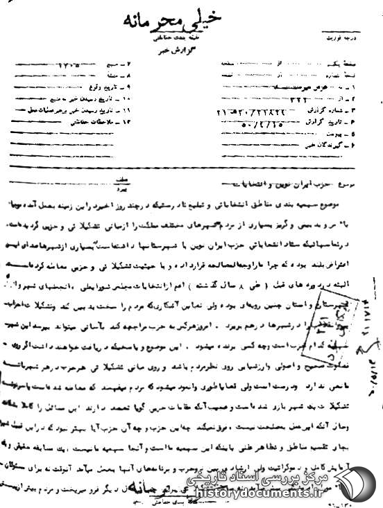 نظیر چنین شکایات و گزارشهایی نیز از طرف نمایندگان و اعضاء حزب مردم واصل که جملگى مؤید نظر فوق مىباشد به همان کیفیت که قبلاً نیز طى گزارشها و بولتنها به استحضار رسیده پس از انجام انتخابات موجى از ناراحتى کادرهاى حزب را فرا گرفته و موجبات ناراحتى و عدم رضایت افکار عمومى را فراهم خواهد نمود.