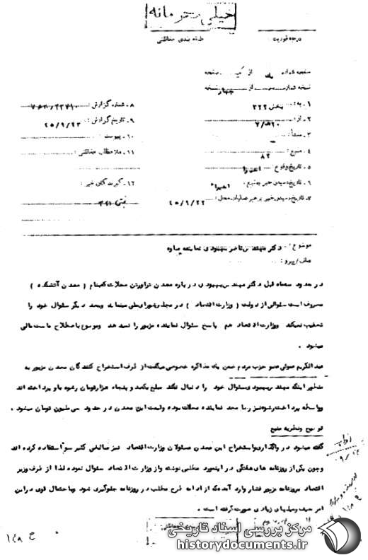 گفته مىشود در واگذارى و استخراج این معدن، مسئولان وزارت اقتصاد نیز مبالغى کثیر سوءاستفاده کردهاند و چون یکى از روزنامههاى هفتگى در این مورد مطلبى نوشته و از وزارت اقتصاد سؤال نموده، لذا از طرف وزیر اقتصاد به روزنامه مزبور فشار وارد آمده که از ادامه طرح مطلب در روزنامه جلوگیرى شود و به احتمال قوى در این امر حیف و میلهاى زیادى صورت گرفته است.