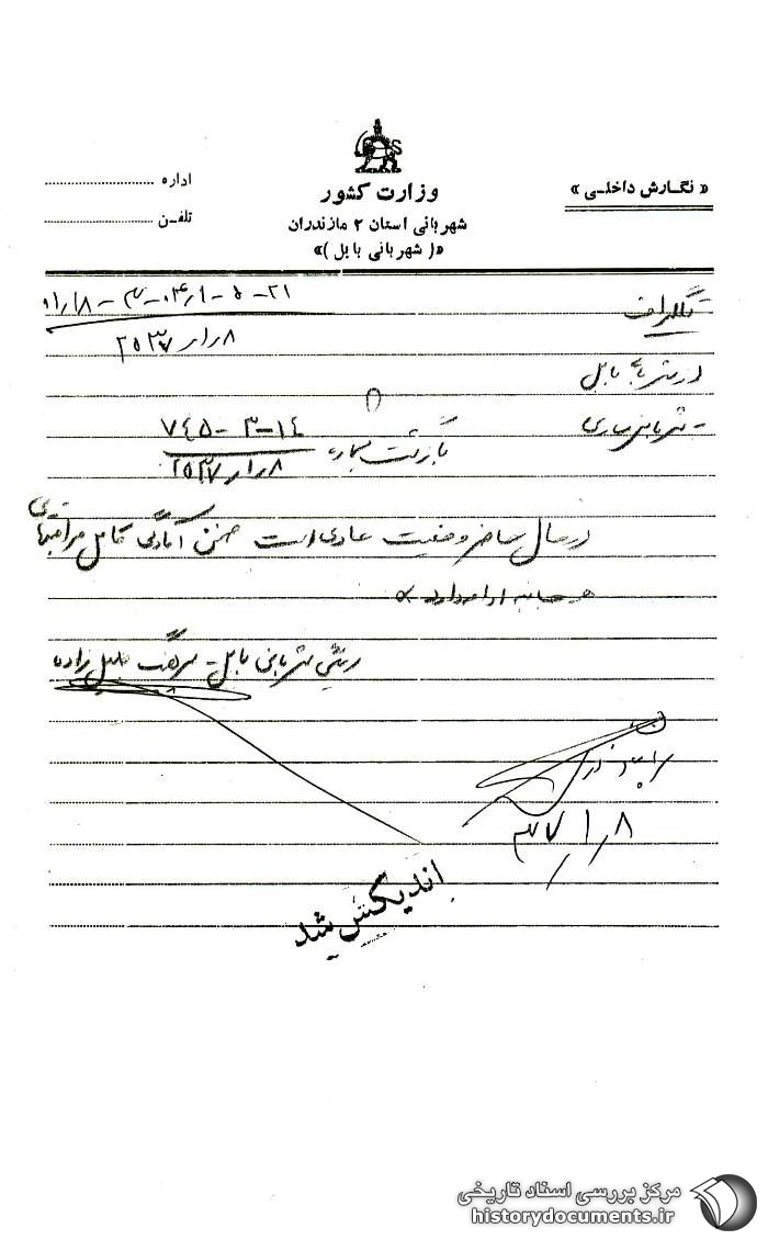 از: شهربانی بابل تاریخ: 8 /1 /2537[] 0108