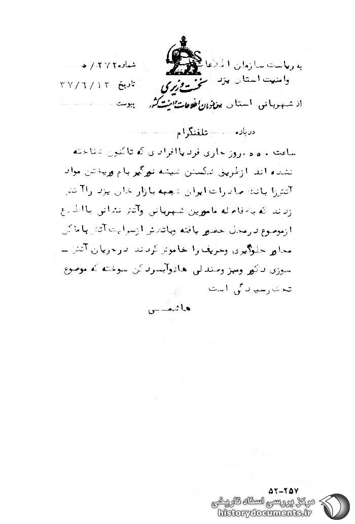 2. ساواک یزد، طی نامه شماره 4138 /26 ﻫ – 13 /6 /57 این خبر را برای اداره کل سوم ساواک ارسال و پرویز ثابتی نیز دستور درج آن در بولتن را داده است. بخش ضمائم