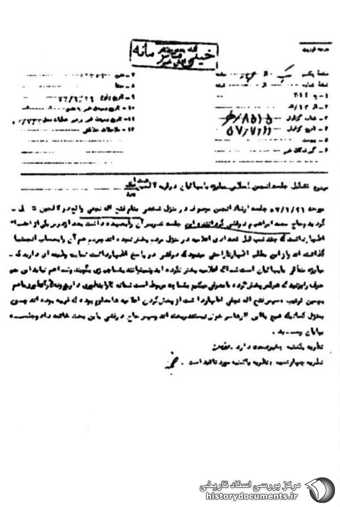 مورخه 26 /6 /57 جلسه ارشاد انجمن موصوف در منزل شخصی بنام فتحاله نجفی واقع در لالجین تشکیل گردید و حاج محمد ابراهیم درفشی گرداننده این جلسه تدریس آن را به عهده داشت بعد از درس یکی از اعضاء اظهار داشت که چند شب قبل تعدادی اعلامیه در منزل مردم پخش نمودهاند و مردم هم آن را به حساب انجمنها گذاشتهاند و از این مطلب اظهار ناراحتی مینمود که درفشی در پاسخ اظهار داشت شما یک وظیفهای دارید که مبارزه منطقی با بهائیان است شما که اعلامیه پخش نکردهاید و نمیتوانند به شما چیزی بگویند و شما هم نباید این حرف را بزنید که هر کس پخش کرده ما معرفی میکنیم به شما چه مربوط است شما به کار اینطوری دارید و نه کار آنطوری ما هم به همین ترتیب، سپس فتح اله نجفی اظهار داشت از پخش کردن اعلامیهها معلوم بوده که غریبه بودهاند چون به منزل کسانی که هیچ با این کارها سر خوش نیستند ریختهاند و سپس حاج درفشی به این بحث خاتمه داد و جلسه به پایان رسید.
