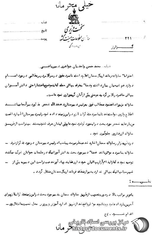 با عرض مراتب بالا، در صورت تصویب از طریق ساواک سمنان به دبیر مورد بحث در این زمینه تذکرات لازم برای آخرین بار داده شود و چنانچه مؤثر واقع نشد، از طریق اداره آموزش و پرورش محل، نسبت به انتقال وی اقدام شود.