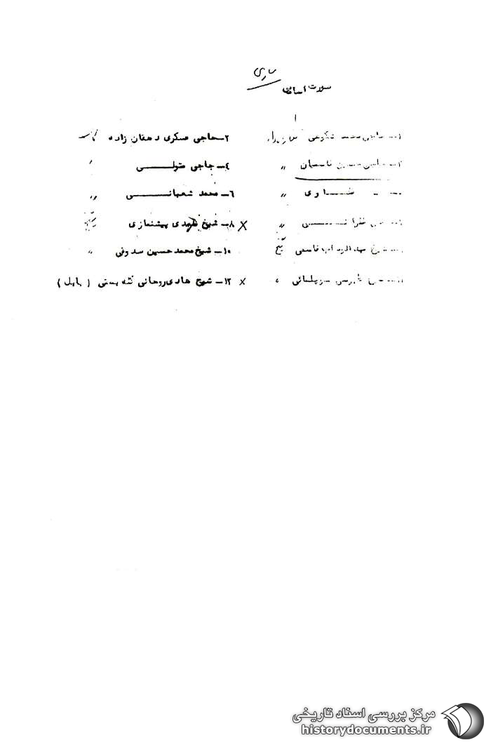 7ـ حاج خزانی مغازهدار 8ـ شیخ مهدی پیشنمازی 9ـ شیخ عبد الوهاب قاسمی4 10ـ شیخ محمدحسین صدوقی5 11ـ شیخ طبرسی سوچلمائی6 12ـ شیخ هادی روحانی کلّهبستی(بابل)