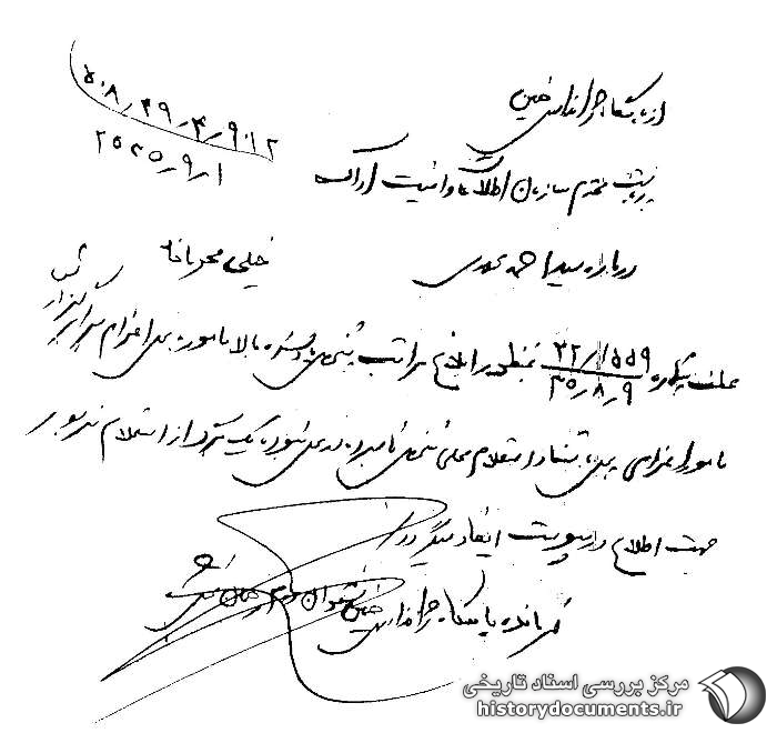 به: ریاست محترم سازمان اطلاعات و امنیت اراک