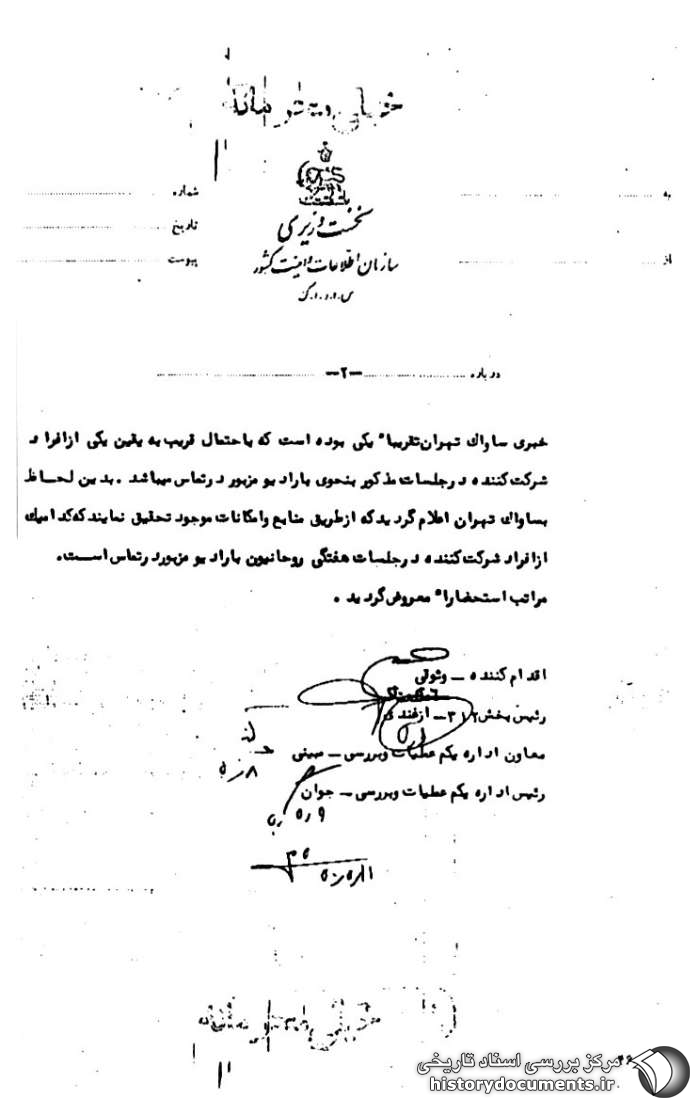 در اجرای امر مراتب به ساواک تهران اعلام گردید.