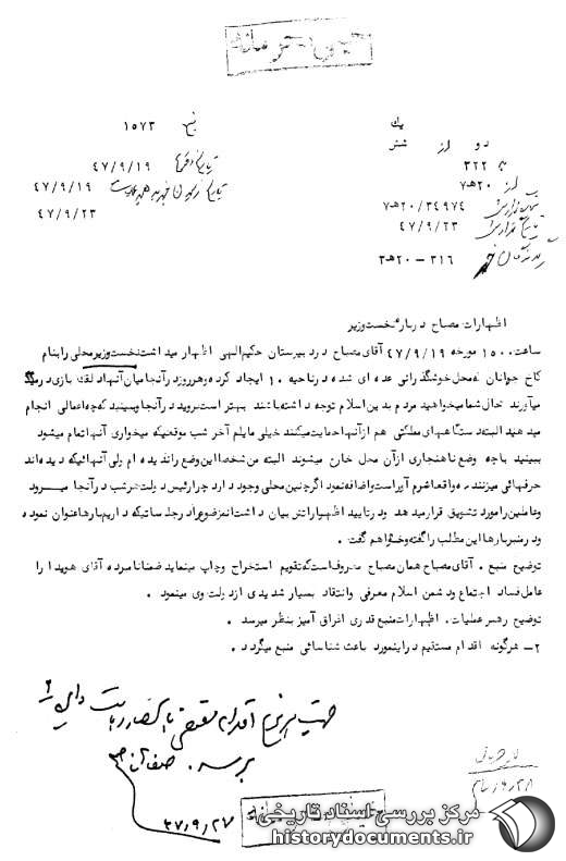 جهت هر نوع اقدام مقتضی به استحضار ریاست دایره 2 برسد. صفائی 27 /9 /47