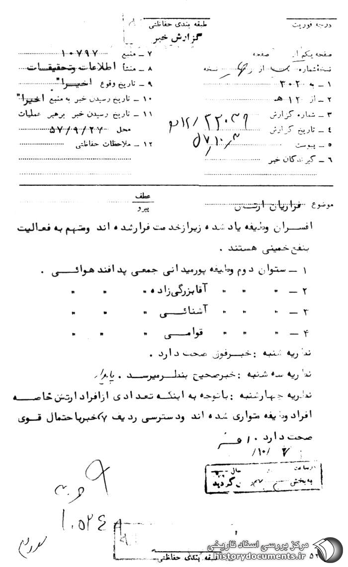 افسران وظیفه یاد شده زیر از خدمت فراری شدهاند و متهم به فعالیت به نفع خمینی هستند.