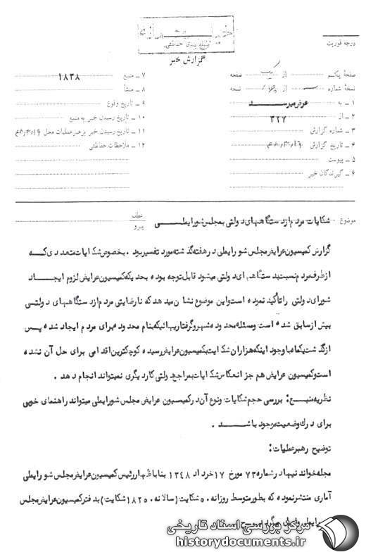 موضوع: شکایات مردم از دستگاههای دولتی به مجلس شورای ملی
