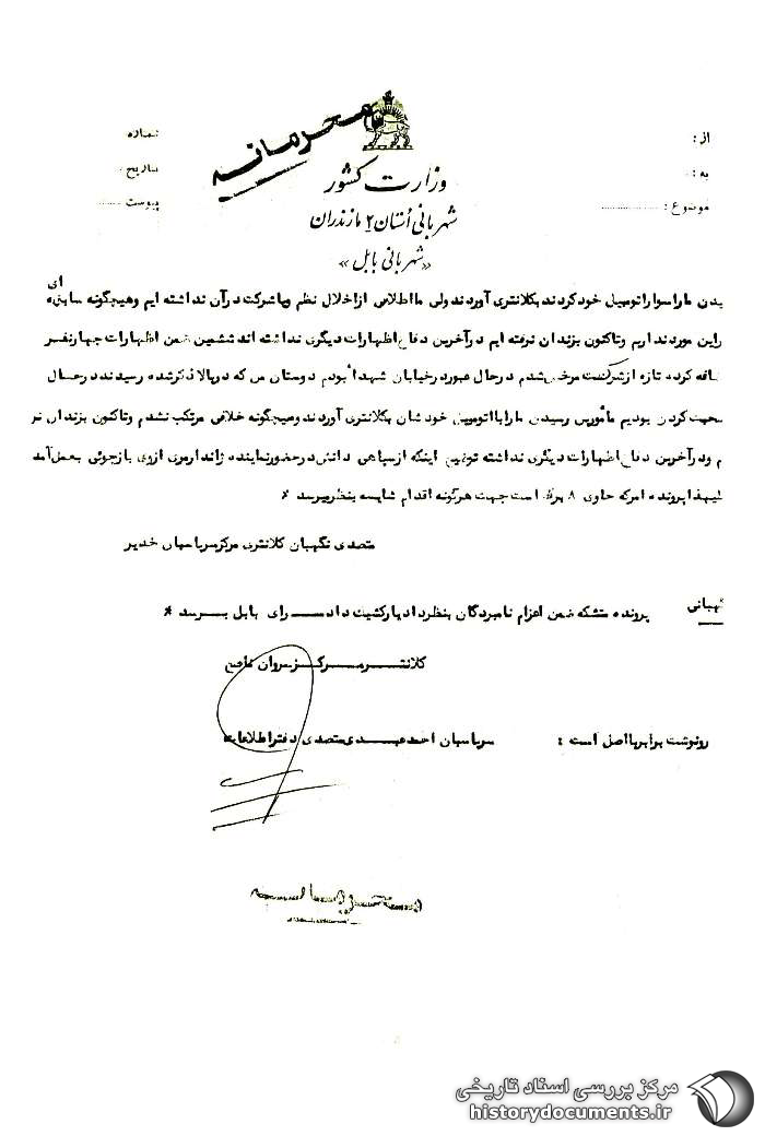3. شهربانی بابل این گزارش را طی نامه شماره: 503-28-4-1 /04- 12 /1 /37 برای اداره اطلاعات شهربانی کل و شهربانی استان مازندران (اطلاعات) و ساواک بابل ارسال نموده است.