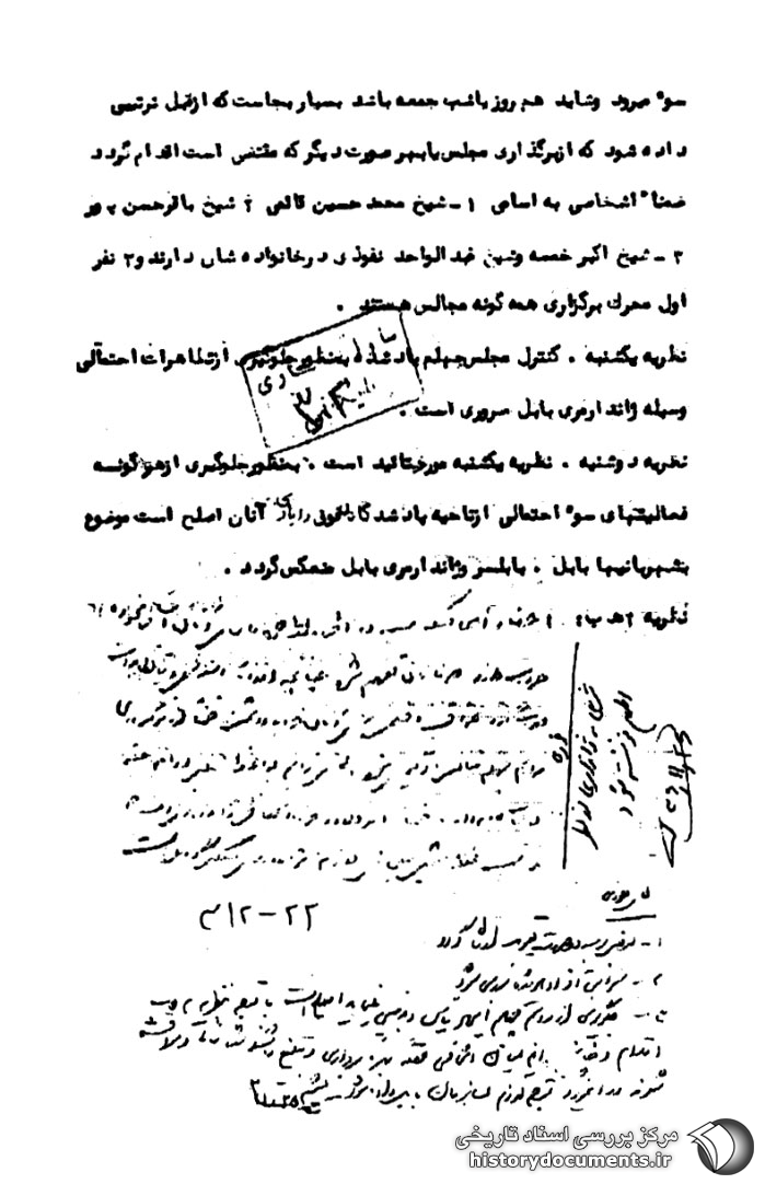 نظریه دوشنبه: نظریه یکشنبه مورد تایید است. به منظور جلوگیری از هرگونه فعالیتهای سوءاحتمالی از ناحیه یادشدگان فوق و ایادی آنان اصلح است موضوع به شهربانیهای بابل، بابلسر و ژاندارمری بابل منعکس گردد.