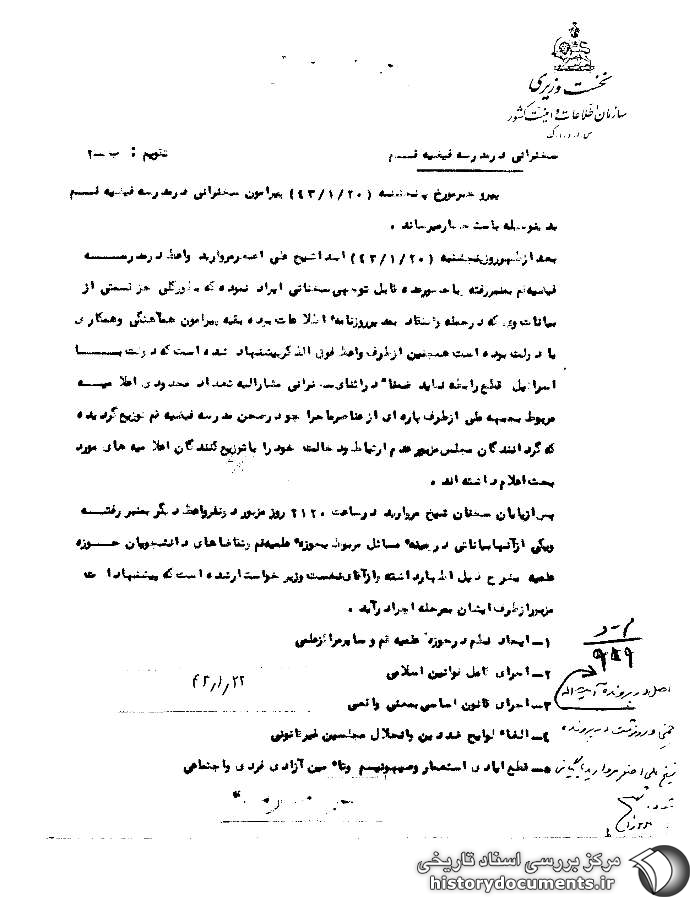 فرستنده : ساواک تهران شماره : 1852 /20 الف