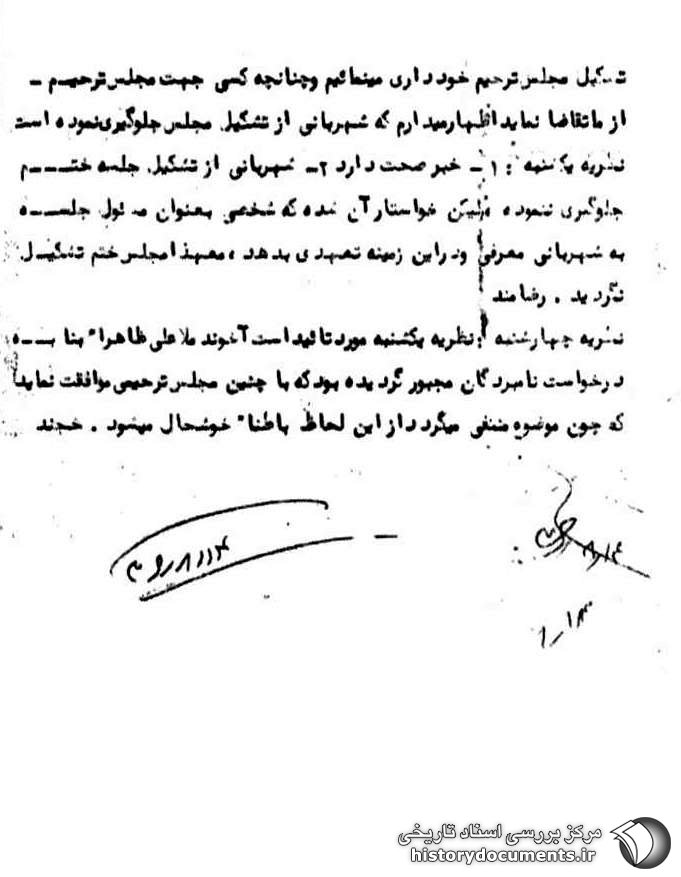 نظریه یکشنبه: 1- خبر صحت دارد ۲- شهربانی از تشکیل جلسه ختم جلوگیری ننموده و لیکن خواستار آن شده که شخصی به عنوان مسئول جلسه به شهربانی معرفی و در این زمینه تعهدی بدهد، معهذا مجلس ختم تشکیل نگردید. رضامند