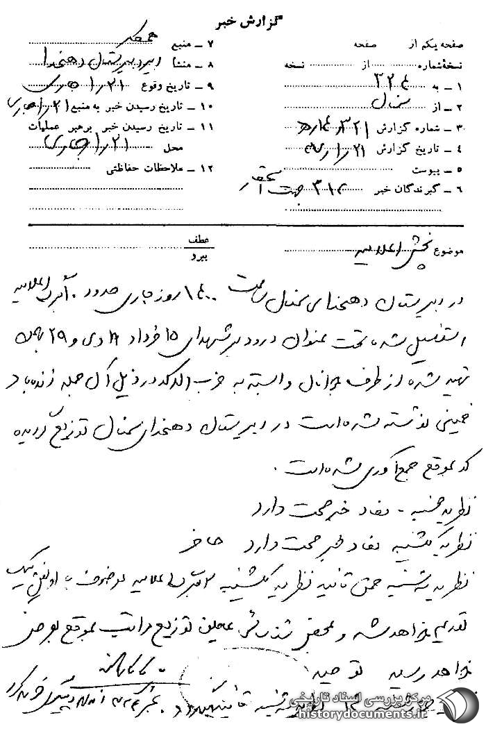 در دبیرستان دهخدای سمنان ساعت 1400روز جاری حدود 10 برگ اعلامیه استنسیل شده تحت عنوان درود بر شهدای 15 خرداد، 19 دی و 24 بهمن تهیه شده از طرف جوانان وابسته به حزبالله که در ذیل آن جمله زنده باد خمینی نوشته شده است، در دبیرستان دهخدای سمنان توزیع گردیده که به موقع جمعآوری شده است.