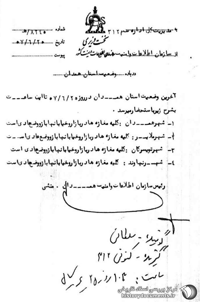 آخرین وضعیت استان همدان در روز 25 /6 /57 تا این ساعت به شرح زیر به استحضار میرسد.