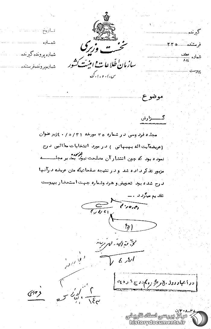 مجله فردوسی در شماره 35 مورخه 31 /5 /40 زیر عنوان (عریضه آیت الله