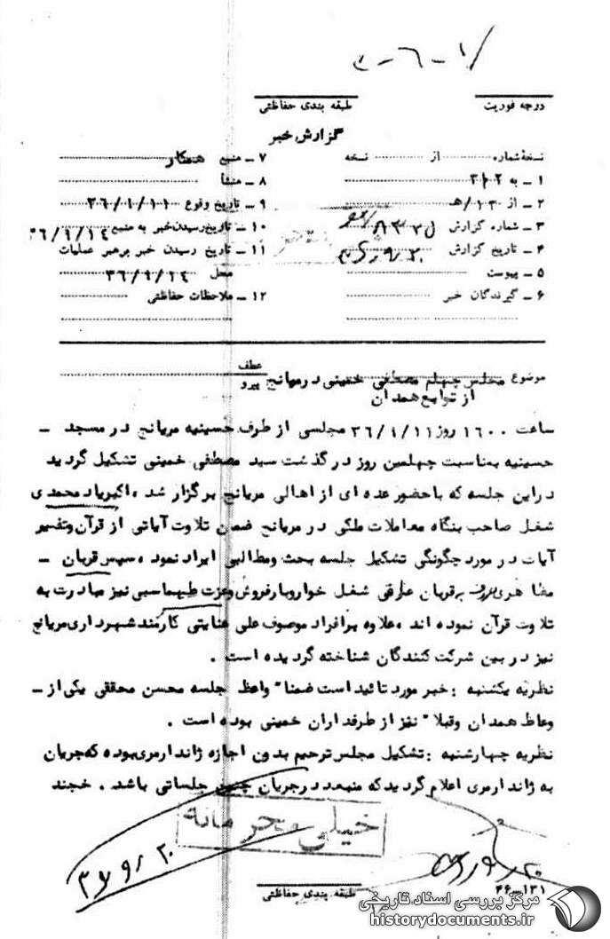 نظریه یکشنبه: خبر مورد تایید است ضمناً واعظ جلسه محسن محققی یکی از وعاظ همدان و قبلاً نیز از طرفداران خمینی بوده است.