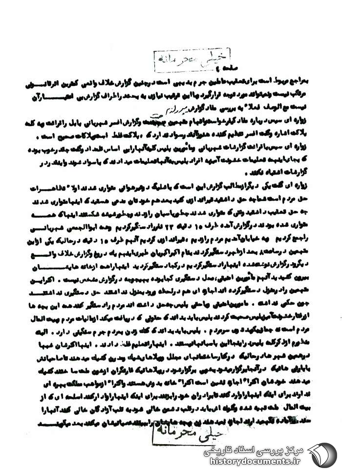 الف: گزارشهای شهربانی بابل و سازمان امنیت بابل
