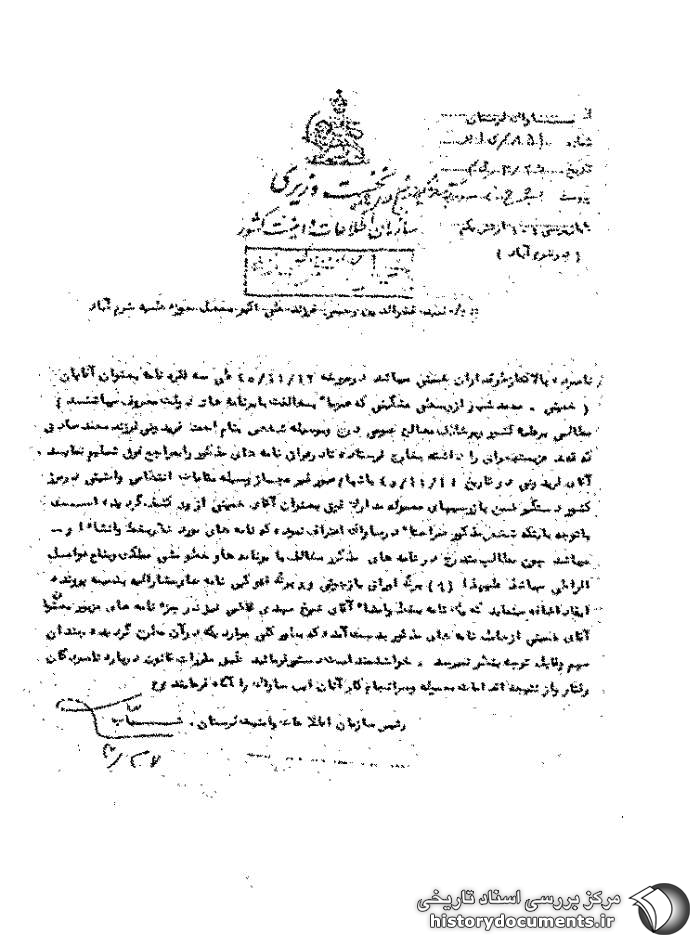 مندرج در نامه های مذکور مخالف با برنامه ها و خط و مشی مملکت و به نفع
