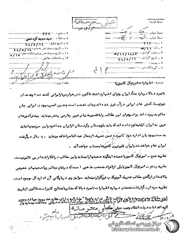 نظریه رئیس ساواک : نظریه سردار تایید می شود.