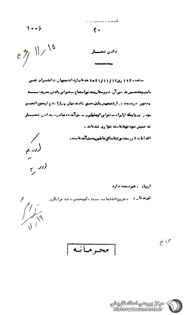 گیرندگان: دفتر ویژه اطلاعات، سب2، کمیته مشترک ضدخرابکاری