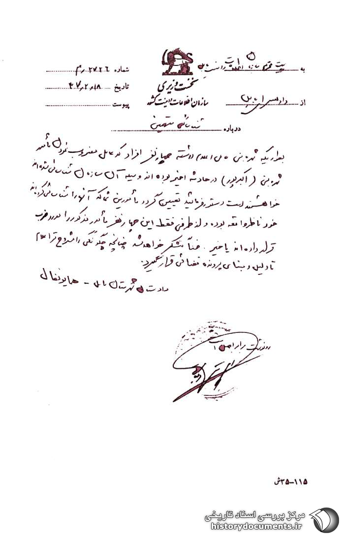 (اکبرپور) در حادثه اخیر بودهاند [به] وسیله آن سازمان شناسائی شدهاند. خواهشمند است دستور فرمائید تعیین گردد مأمورین شما که آنها را شناسائی کردهاند خود ناظر واقعه بوده و از طرفی فقط این چهار نفر مأمور مذکور را مورد ضرب قرار دادهاند یا خیر. ضمناً تشکر خواهد شد چنانچه چگونگی را مشروحتر اعلام تا دلیل و مبنای پرونده قضائی قرار گیرد.1