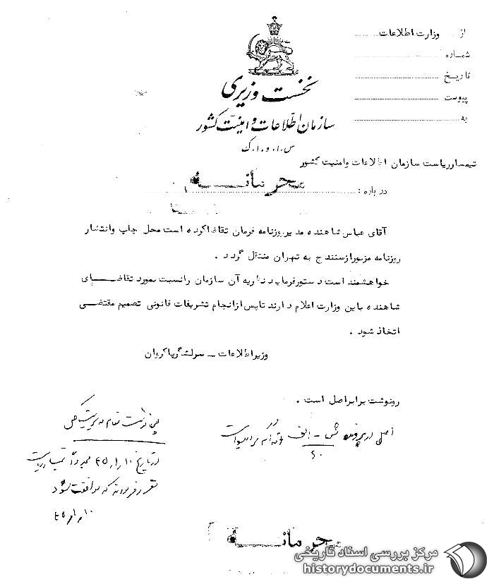 انتشار روزنامه مزبور از سنندج به تهران منتقل گردد.