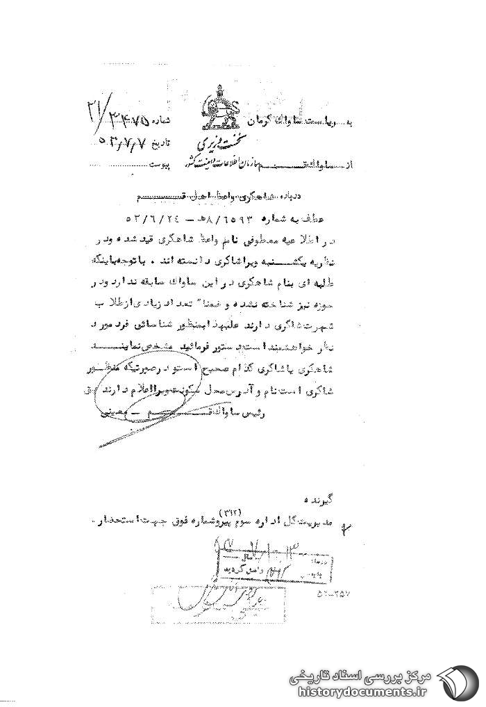 درباره: شاهکری واعظ اهل قم عطف به شماره 6593/8 ه ـ 24/6/53
