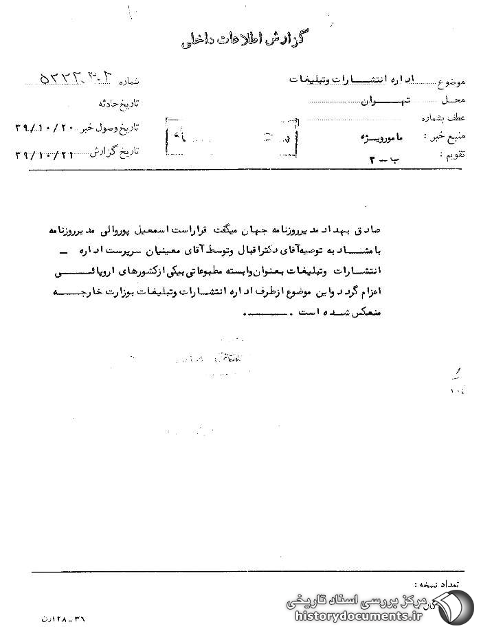 صادق بهداد1 مدیر روزنامه جهان می گفت قرار است اسماعیل پوروالی