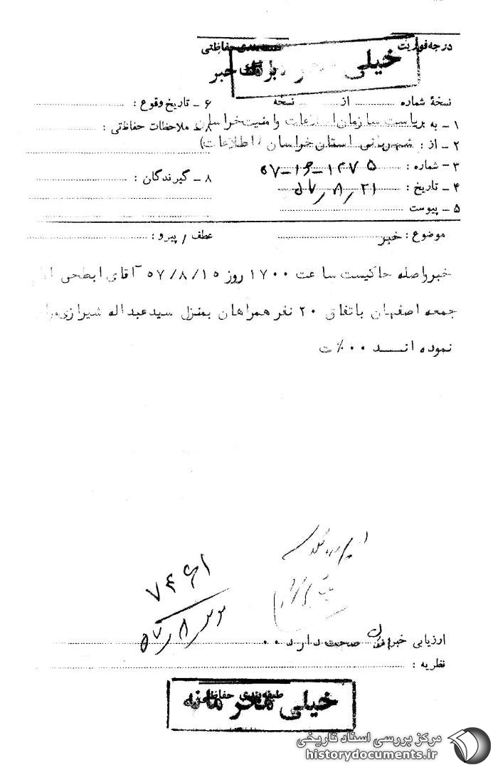 به: ریاست سازمان اطلاعات و امنیت خراسان