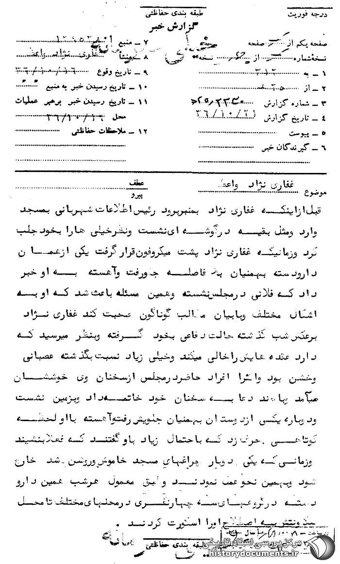 قبل از اینکه غفاری نژاد به منبر برود رئیس اطلاعات شهربانی بمسجد وارد و
