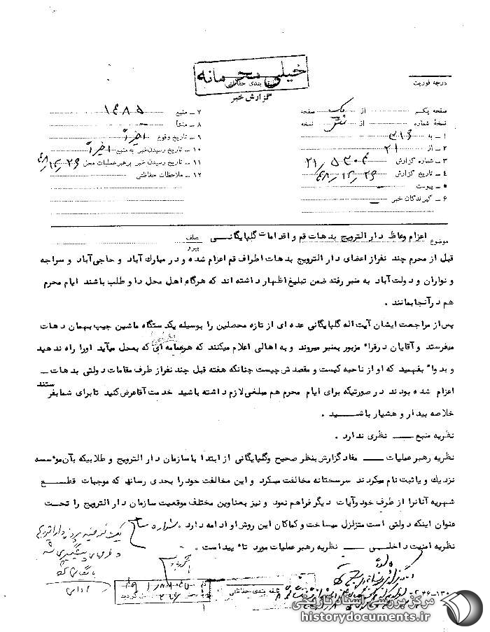 موضوع : اعزام وعاظ دارالترویج بدهات قم و اقدامات گلپایگانی