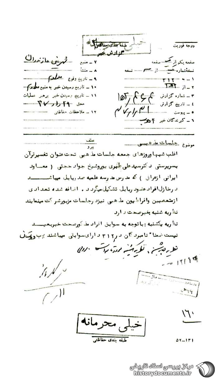 1. اداره کل سوم پس از دریافت این گزارش طی نامه شماره: 2534 / 312 - 3 /3 /37 دستور داد: «ضمن مراقبت از جلسات موصوف هرگونه فعل و انفعال انجام شده را به این اداره کل اعلام دارند.»