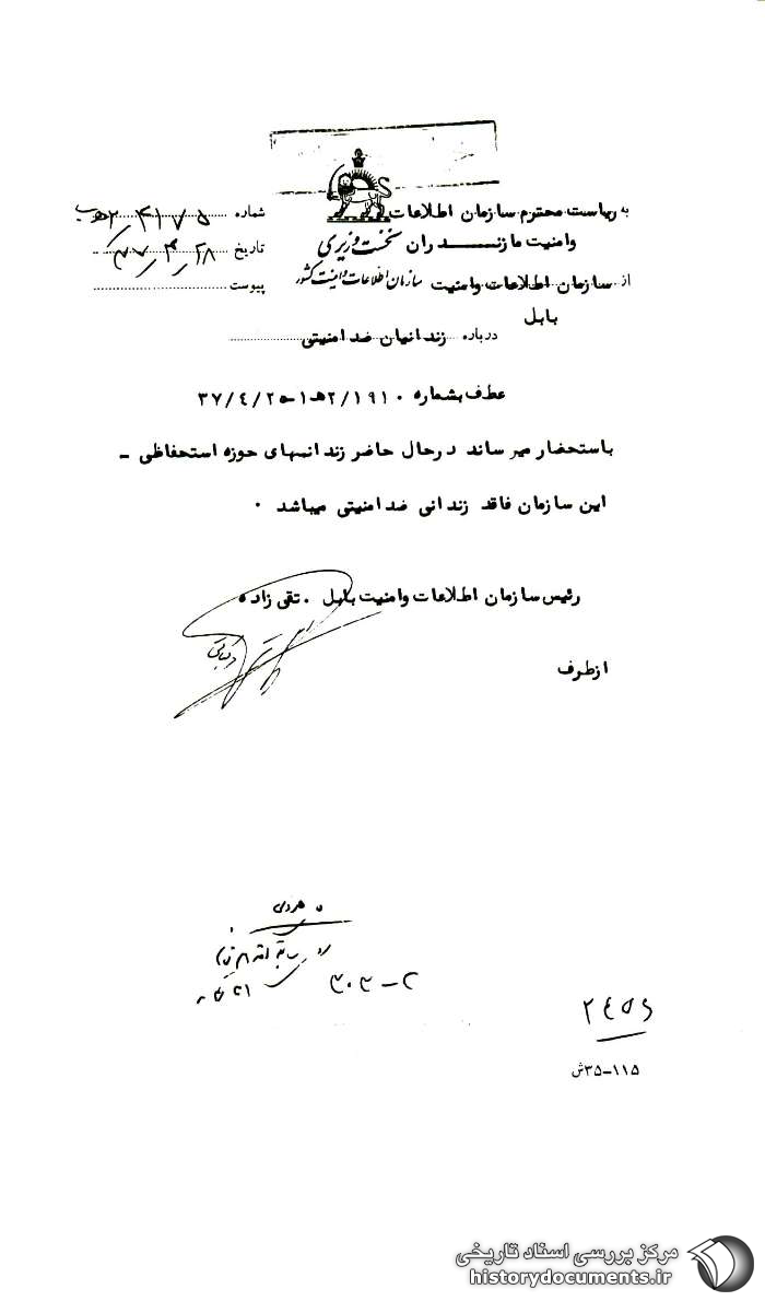 به: ریاست محترم سازمان اطلاعات و امنیت مازندران