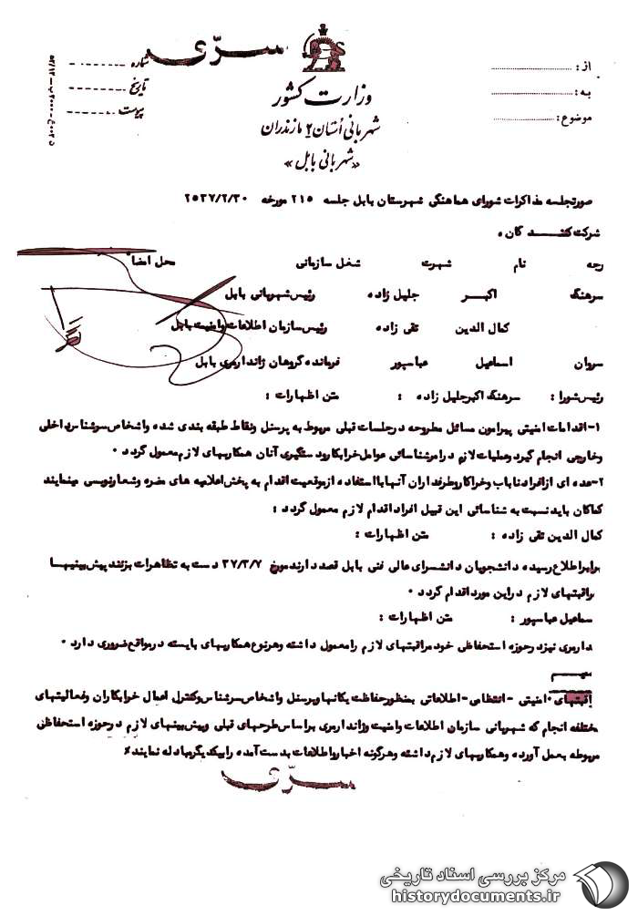 صورتجلسه مذاکرات شورای هماهنگی شهرستان بابل جلسه 215 مورخه 30/2/2537